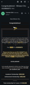 장학금을 받았습니다.